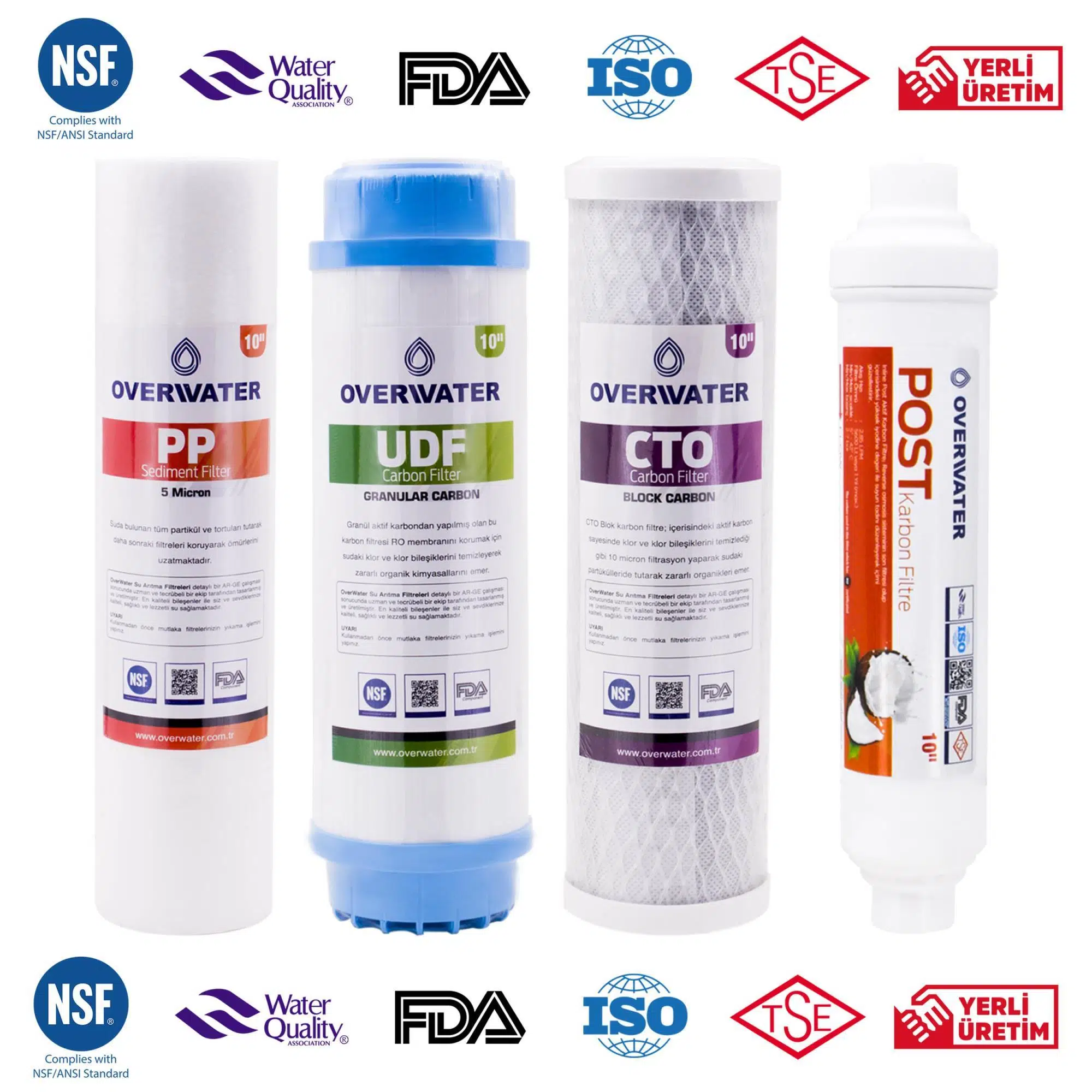 | NSF Uygunluğu | Sediment, GAC, CTO ve Post Karbon kartuşlar NSF sertifikalıdır |