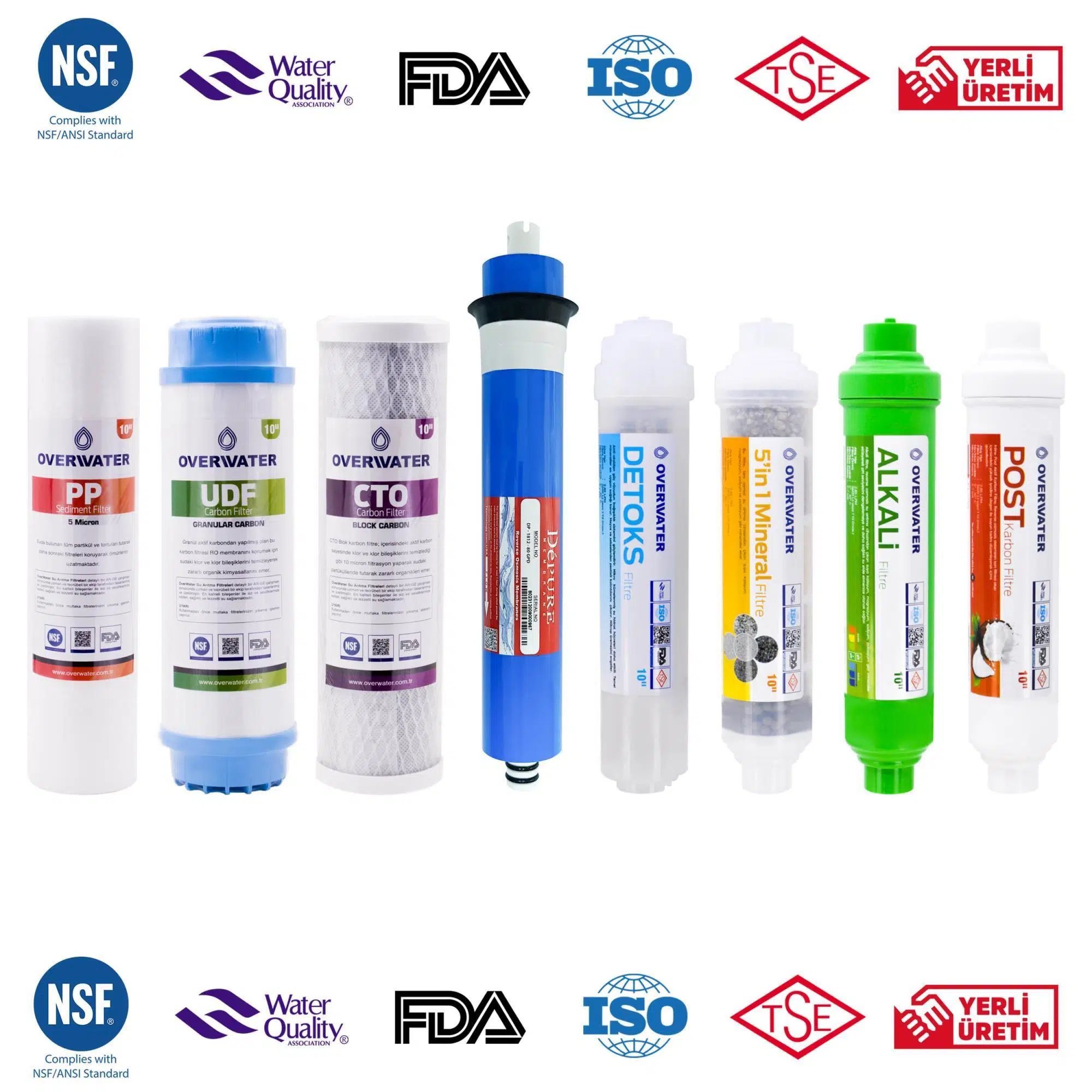 OverWater Açık Kasa Su Arıtma Cihazı 8 Li Filtresi Seti 12 Aşamalı Depure Membran Filtre